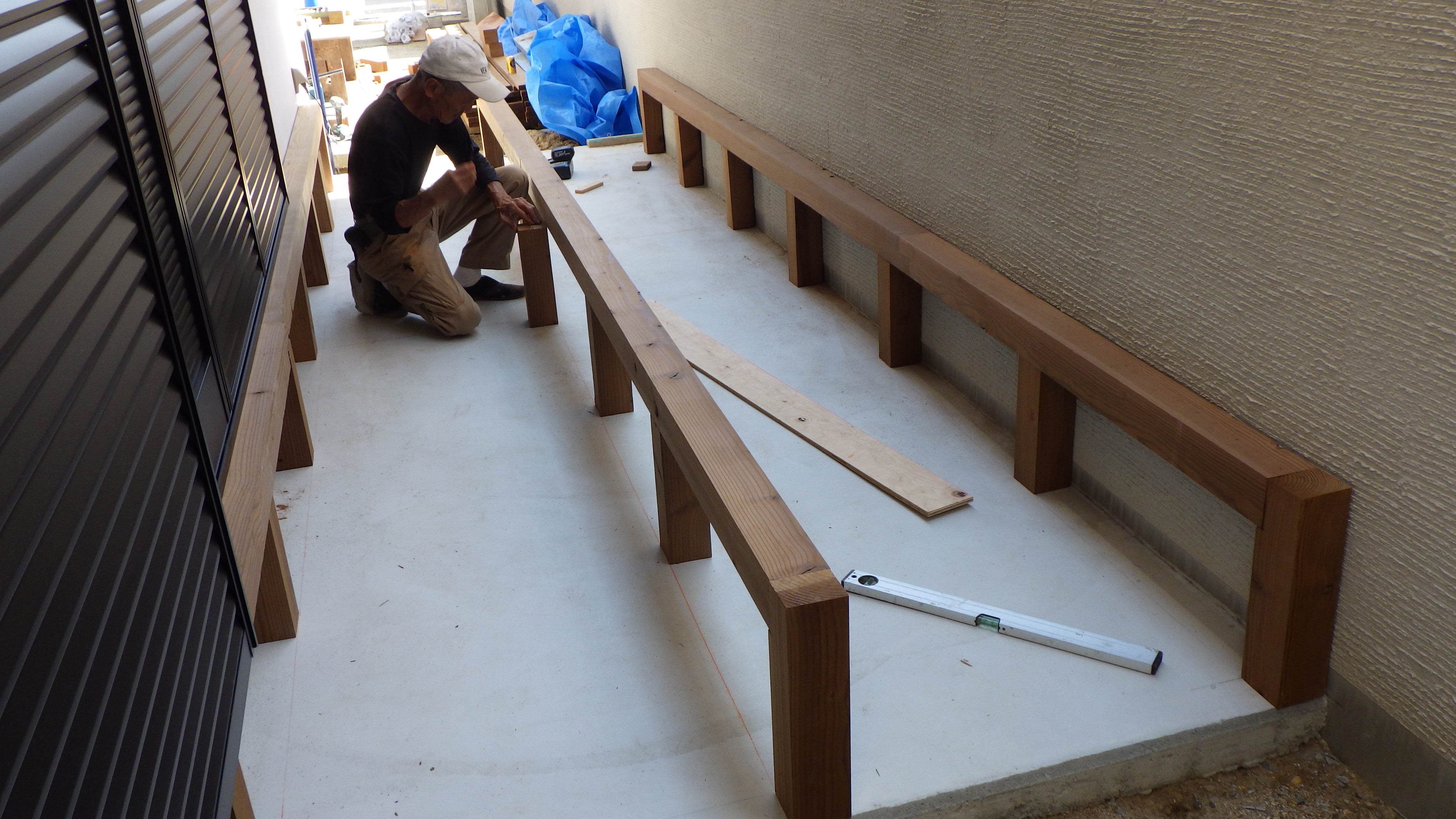 国産木材(杉)を高温加熱処理乾燥させたセラウッド(中国木材)で作成した、ウッドデッキです。部屋からほぼフラットで繋がります。陽当たり良好のウッドデッキでは、ほっこり、のんびりな時間が過ごせます。