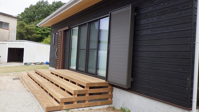外観 段々ウッドデッキのアプローチ(セラウッド〈中国木材〉)