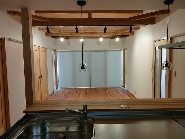 新築施工例 引戸の向こうは子室☆人が集まるウッドデッキアプローチの家(神戸市西区)