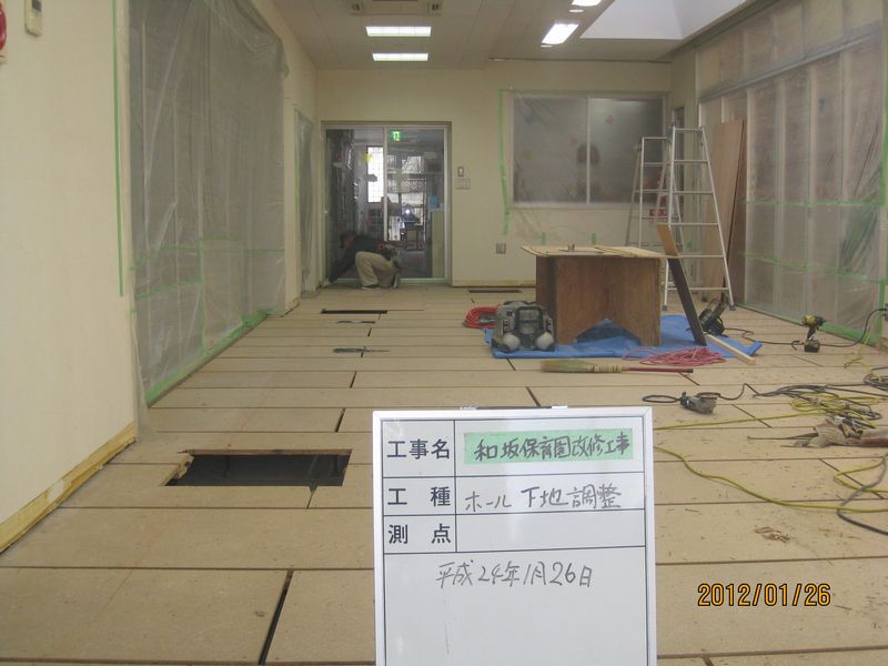 和坂保育園のフロア改修工事が始まりました。