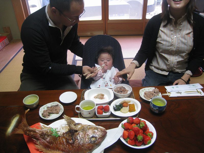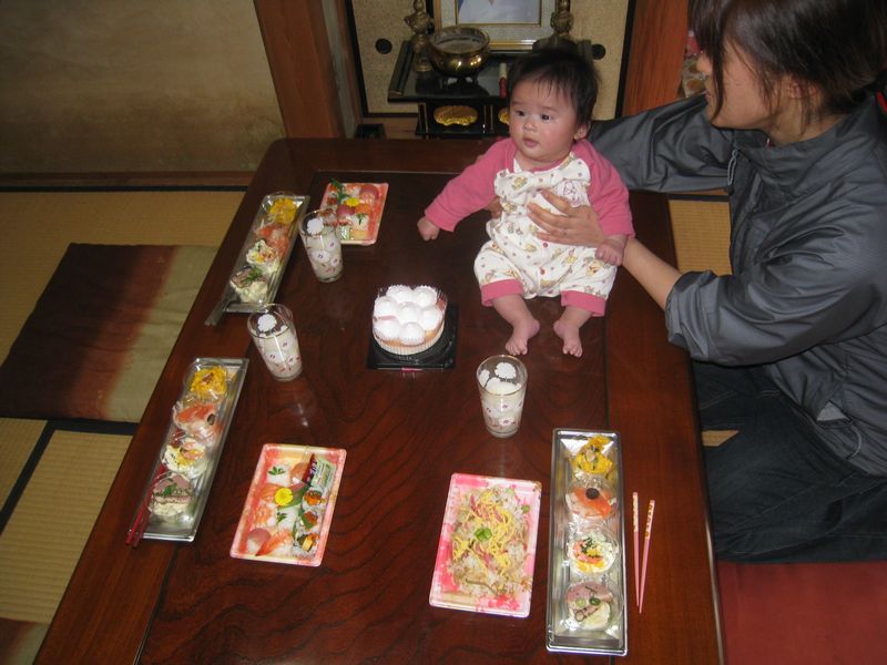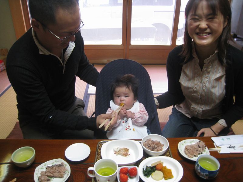 戸狩スキーに行ったとき明石の地酒「花の蔵」を手土産に持って行きましたが、大阪の友達があの味が忘れられないので買いに行きたいと明石まで来ました。地元明石の酒をわざわざ求めに来たということで嬉しい限りです。茨木酒造では来楽という銘柄の酒を中心に醸造していますが、花の酵母を使った酒として「花の蔵」があります。(左上写真、4月2日のブログ参照)甘酒が売っていましたが、離乳食として赤ちゃんに与えても良いという事でビックリしました。甘酒で乾杯できていいんじゃないかなと一本購入しました。さっそく娘に試飲させました。(右上写真)