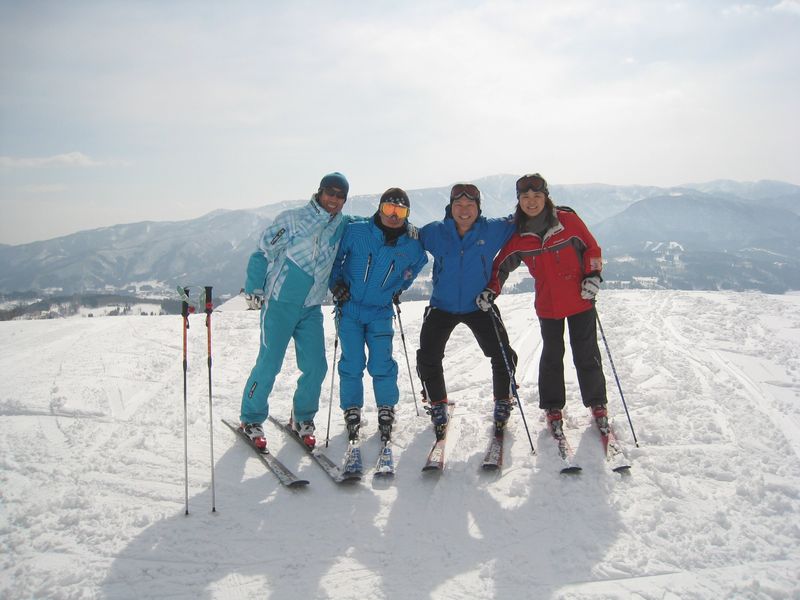 それを土産に戸狩スキー場に行きました。この日はシーズン最終日となるそうです。こんなに良い雪が残っているのにもったいない!一緒に写っている方は1級の上のテクニカルというすごいライセンスを持っている方です。ちなみに私は2級、嫁さんは1級です。大阪の友達も1級です。皆さんかなりハイレベルです。(左下写真、中下写真)