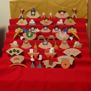 我が家も、木工作大好きな主人の父が、手作りしてくれた「7段雛人形」を2月に入ってから飾りました。