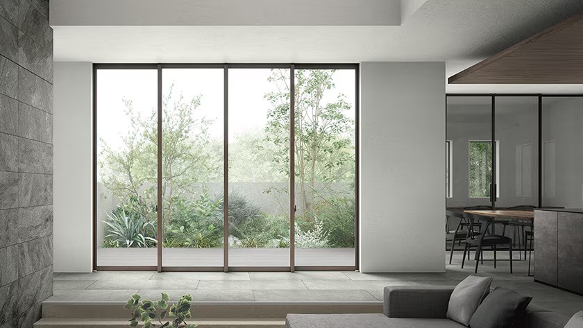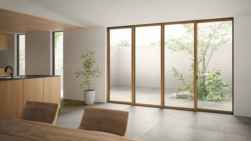 引違い窓 4枚建は、中央のフレームが1本しか見えないデザイン。