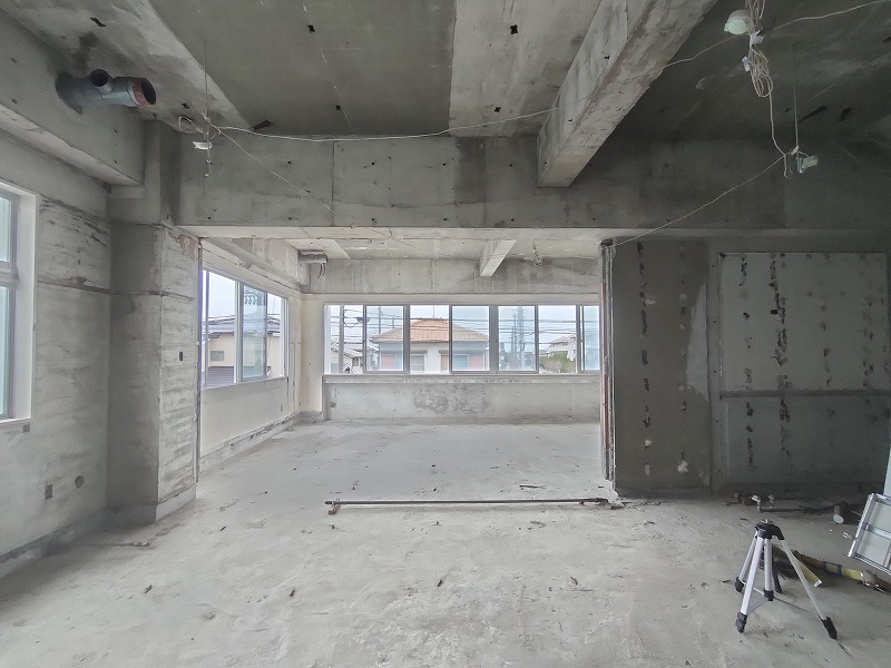 鉄筋コンクリート造3階建ての2階のスペースで、スケルトンになった状況から内装を仕上げていきました。