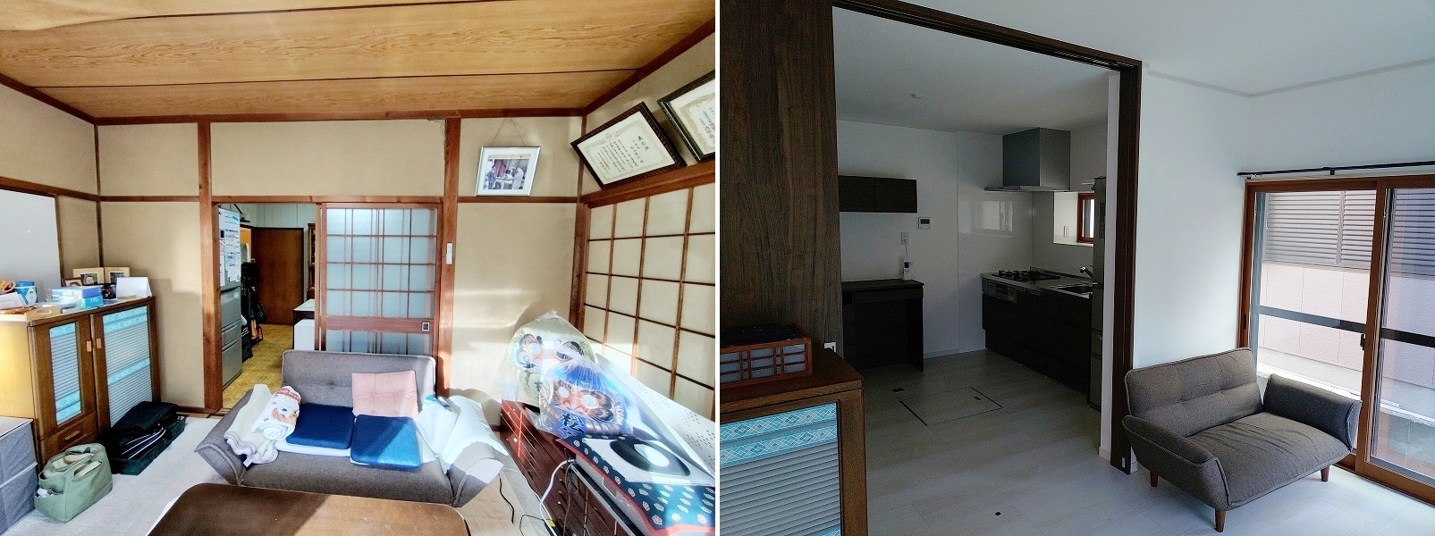 リビングは耐震壁、内窓、可動間仕切壁を設けて、部屋どうしを通れるようにするリフォームをしました。