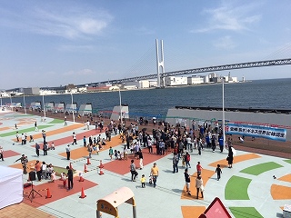 この連休中に立ち寄った、神戸市東灘区のサンシャインワーフというショッピング施設に、長さがギネス世界記録に認定されている雲梯がありました。長さ150mだそうです!(この写真では、雲梯が分かりにくいですが(^_^;))