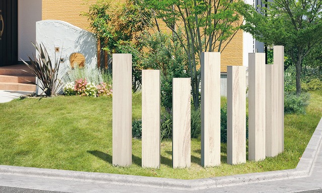 ガラスパネルや枕木連結カバー、機能部(表札・照明・インターホン・ポスト)と組み合わせることで、玄関前の目隠しや庭のアクセントなど、様々なコーディネートが可能となります。